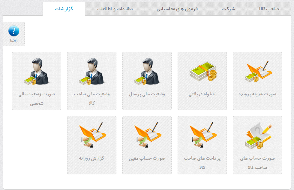 گزارشات از مهمترین بخش های سیستم سناتک بوده و عملا خروجی نرم افزار از اطلاعات ثبت شده در نرم افزار می باشد. در ذیل تعداد کمی از گزارشات پیش فرض را مشاهده می کنید که توسط نرم افزار تولید می گردد. شما می توانید متناسب با روند کاری روزانه، هفتگی، ماهانه و سالانه خود گزارشات متنوع تری درخواست نمایید.